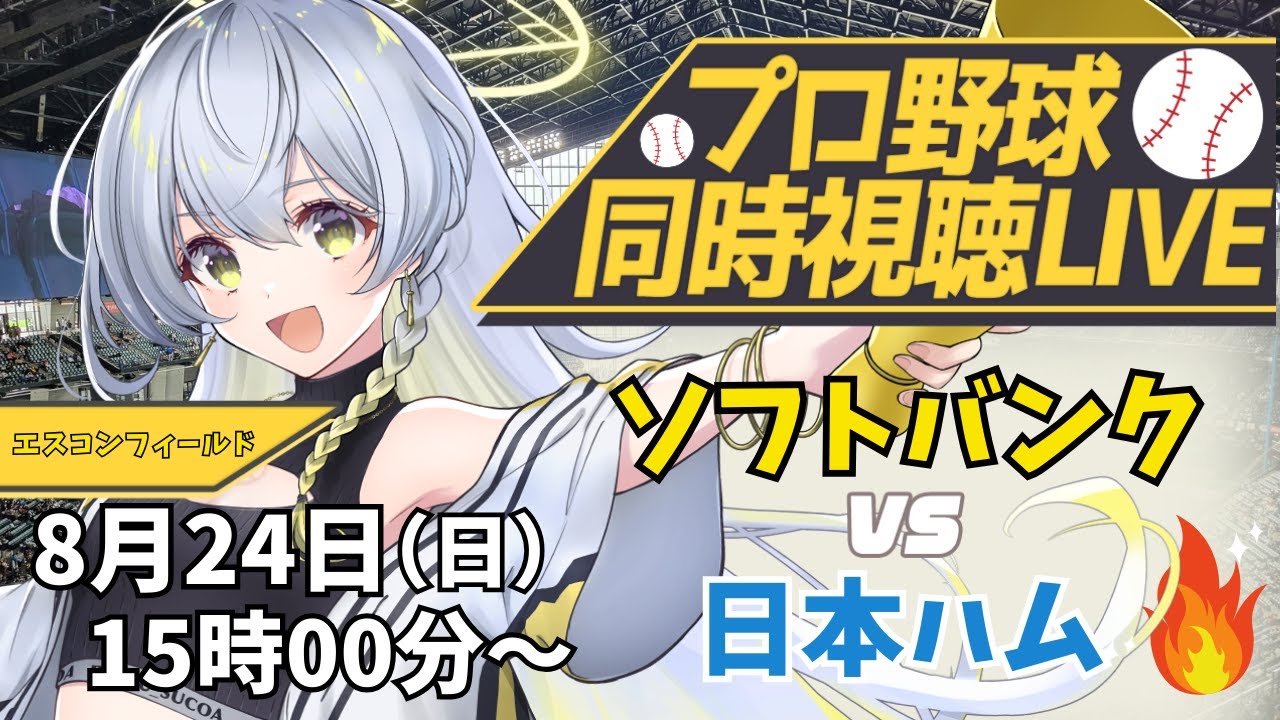 【プロ野球同時視聴LIVE】8/24 福岡ソフトバンクホークス VS 北海道日本ハムファイターズ戦 🔥※現地映像なし※試合途中から【野球系VTuber凛宮スコア】 #vtuber #プロ野球
