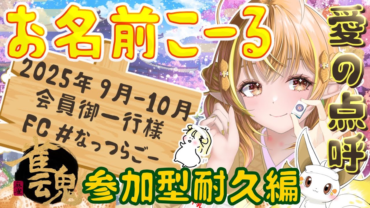 【雀魂/参加型/お名前コール】🚩FAN CLUB - 2025年9月~10月ご加入者様へ愛を込めて🙇💛なっつらごー!【 #なっつぐるめ / #vtuber / #初見歓迎 】