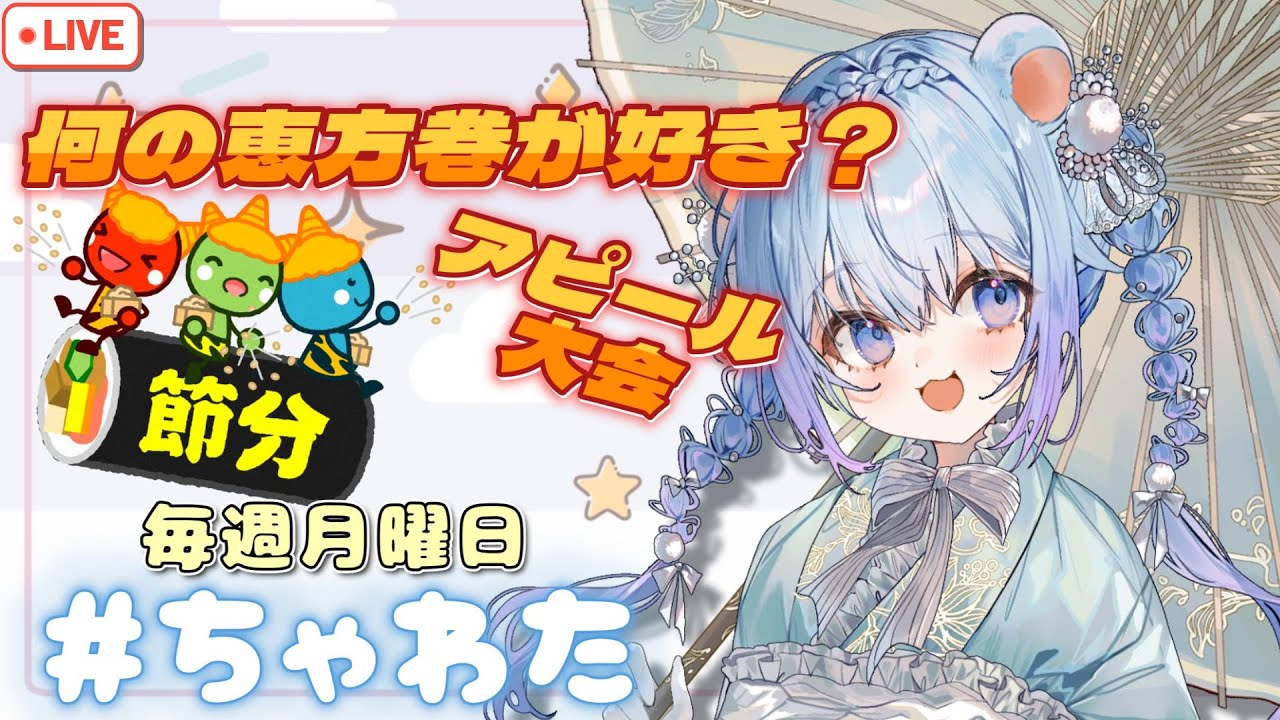 ⚪【#ラジオ配信 #37 】節分企画!君の好きな恵方巻は何~?アピール大会というよくわからん企画~!!#ちゃわた 【ちゃむ。/ねくすとぴあ】#ちゃむ今日も元気