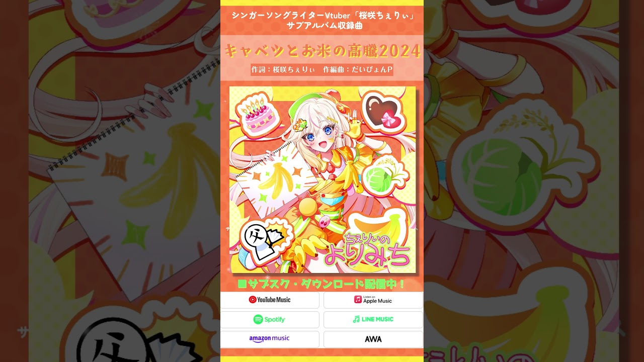オリジナル曲『キャベツとお米の高騰2024 / 桜咲ちぇりぃ』音楽配信中! #vtuber #オリジナル #shorts